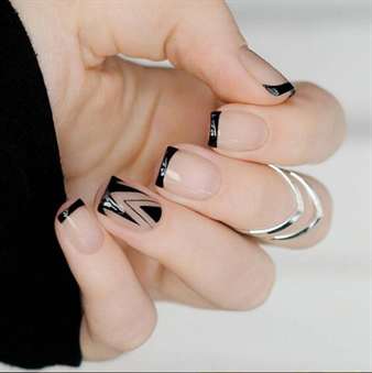 Сразу после классического белого маникюра находит своё место чёрный френч. Что же он собой представляет? По сути, это тот же традиционный французский маникюр, но выполненный в чёрном цвете. Он гораздо более универсален, так как отлично сочетается с любым стилем одежды и может быть дополнен различными стразами. Возможность экспериментировать с дизайном ногтей делает чёрный френч особенно привлекательным для девушек. Тёмные оттенки визуально удлиняют ногти, что делает этот вариант идеальным для тех, кто предпочитает короткие ногти.