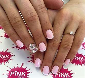 Здесь речь идет не о мелких стразах, которые можно носить каждый день, а о крупных камнях, которые обычно украшают ногтевую пластину безымянного пальца. Специалисты советуют использовать такие камни только на нежной основе френча, так как с яркой основой ноготь будет выглядеть невыразительно, и общий вид может показаться дешевым. Такой французский маникюр в 2022 году станет отличным выбором для свадебного торжества. Примеры можно увидеть на фотографиях.