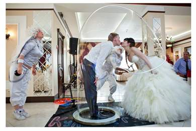 Все мы дети, вне зависимости от возраста. Каждому хочется окунуться в это чудесное время – детство. Мыльные пузыри – настоящий способ окунуться в мир волшебства. Только в данном случае речь идет не об обычных маленьких пузырьках, а больших, в человеческий рост. Молодые своими руками могут из пузырей сделать воздушные сердца. Необычайно смотрится поцелуй влюбленных в большом мыльном пузыре.