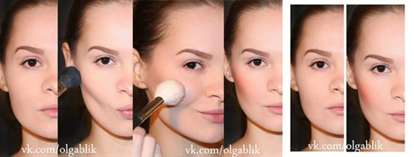 Ниже представлена пошаговая инструкция по нанесению румян на лицо: