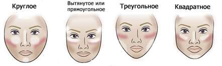 | Тип лица | Зона нанесения румян | Оттенок румян |