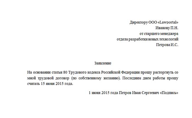 Форма написания заявления на увольнение по собственному желанию