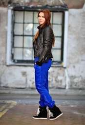 Высокие кеды прекрасно гармонируют с джинсами-скини, заправленными в обувь. В холодные дни образ можно дополнить объемным свитером, толстовкой или короткой кожаной курткой.