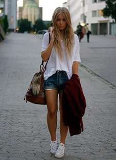 Создать стильный летний образ можно, сочетая белые кеды с высокими шортами и свободной футболкой.