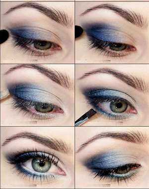 Макияж для глаз предлагает множество вариантов. Брюнеткам к голубому платью подойдут оттенки шоколада и меди. Если глаза голубые, можно использовать тени того же цвета, при этом они должны быть более насыщенными, чем для блондинок.