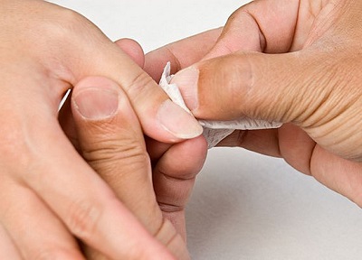 6.В завершение следует протереть ноготь спиртовым раствором. Делается это для того, чтобы убрать все излишки и липкий слой.