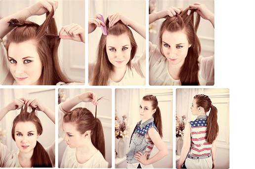 Такой хвост стал настоящим трендом уличной моды, поэтому его можно смело сочетать с рваными джинсами, белыми рубашками, кедами и объемными юбками. В макияже стоит сделать акцент на глазах и бровях.