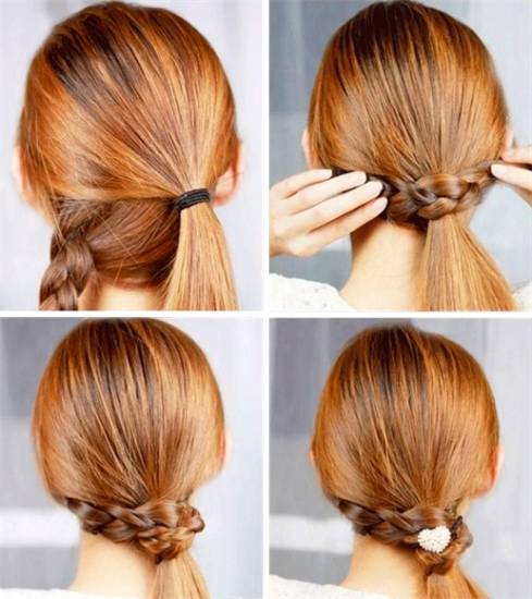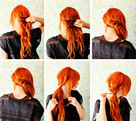 Любите модную небрежность, а обычный низкий хвост уже надоел? Тогда эта прическа должна вам понравиться. Разделите волосы на две части, и завяжите их в узел на затылке. Далее от узла заплетите косу и протяните под узелком, зафиксируйте невидимками. Можно немножко расшевелить прическу, чтобы выпало несколько прядей вперед.