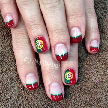 На одной руке можно собрать как маникюр френч красный с белым полумесяцем , так и вязанный узор на целом ногте и на части его.