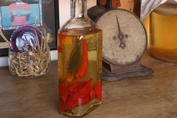 Возьмите полулитровую банку и налейте в неё водку. Поместите сюда два достаточно больших перчика, как минимум по 10 сантиметров каждый. Теперь банку нужно достаточно плотно закрыть и убрать в тёмное прохладное место на две недели. После чего её можно использовать.