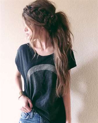 | Полураспущенные волосы с плетением | Распустите волосы, заплетите тонкую косичку с одной стороны и закрепите ее на затылке. | |