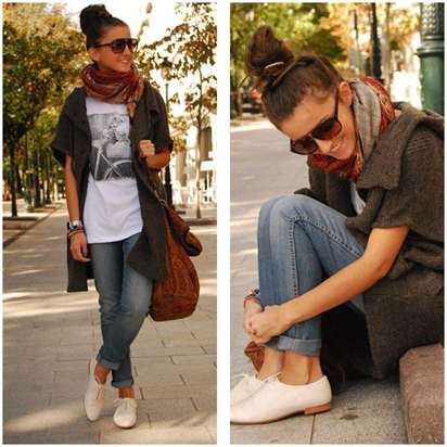 | Повседневный шик | Джинсы-бойфренды, свободный свитер, пальто оверсайз, шарф | Оксфорды на толстой подошве, лакированные оксфорды |
