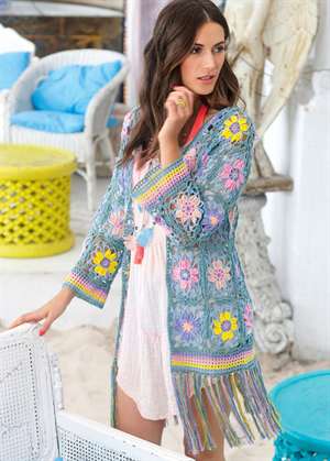 Техника вязания квадратами знакома многим рукодельницам и может быть успешно применена и для кардигана. Изделие можно дополнить бахромой для создания оригинального акцента.