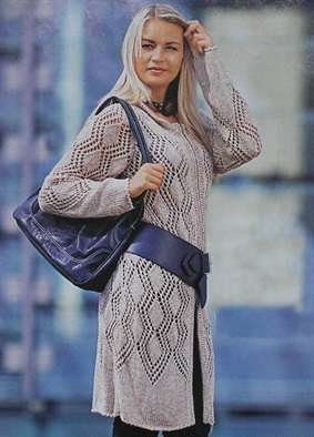 Стройные дамы могут экспериментировать с различными техниками вязания. В последнее время популярностью пользуются азиатские косы. Особенность этой модели заключается в том, что изделие вяжется по горизонтали: сначала создаются все косы, а затем они сшиваются в единое целое.
