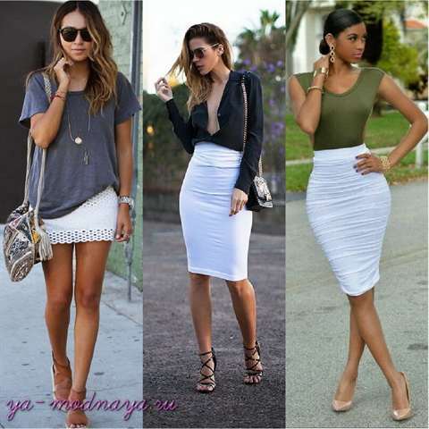 Популярные модели белой юбки-карандаш