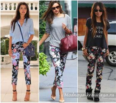 На высоких девушках прекрасно будут смотреться джинсы прямого кроя. Если такие брюки дополнить крупным цветочным принтом, это только подчеркнет чувство стиля. Однако такой вариант не рекомендуется для невысоких девушек, так как он может визуально уменьшить рост. Очень эффектно стройнит неконтрастный узор, например, серо-черный. В то же время модели, где преобладает фон, могут добавить лишний объем.