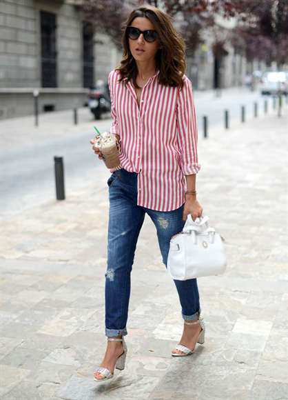 Для тех, кто предпочитает яркие образы, отлично подойдет рубашка в красную полоску. Она прекрасно комбинируется с различными цветами, текстурами и материалами. Джинсы, брюки в тон, юбка классического кроя и даже джинсовый пиджак подчеркнут индивидуальность этой рубашки.