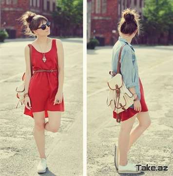 Аксессуар такого цвета уже сам по себе достаточно заметная деталь, поэтому одежда должна быть сдержанных тонов. Очень хорошо красный рюкзак смотрится с одеждой из денима. И, кстати, для его ношения нет ограничений по возрасту, так что дамам 50+ можно смело приобретать данную вещь.