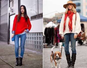 Джинсы. Это могут быть как обтягивающие модели, так и расклешенные от колена. Классический деним прекрасно гармонирует, например, с красным свитером оверсайз. Такой образ отлично впишется в повседневный стиль и будет уместен для визита в кафе или встречи с подругами.
