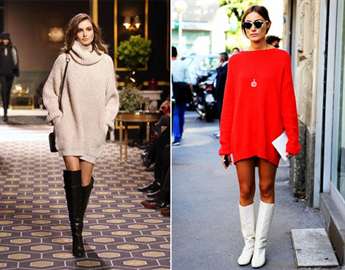- Сапоги-чулки. Они добавят изюминку к вашему наряду, особенно если вы выбрали платье-свитер оверсайз.