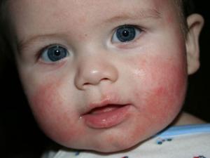 Атопический дерматит относится к группе аллергических заболеваний. У младенцев он может проявляться сначала в виде отеков на лице, покраснения и шелушения кожи на руках и ягодицах, а затем и на ногах. Также могут появляться мелкие пузырьки и зуд. В некоторых случаях наблюдается увеличение миндалин и аденоидов.