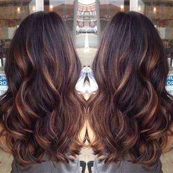 Для темных волос отлично подойдут окрашивания в слегка более светлые оттенки, а контрастные цвета используются реже. Для очень темных локонов идеальными будут ореховые, янтарные, шоколадные, бронзовые или медовые оттенки. Чтобы сделать образ более ярким и выразительным, можно добавить пряди бордового цвета.