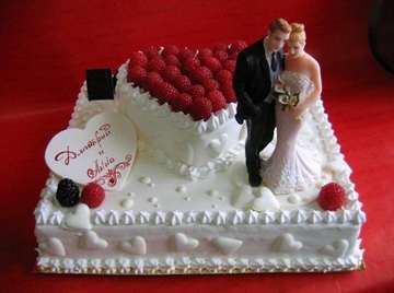 Сезонные ягоды и экзотические фрукты стану вкусным, полезным и не менее привлекательным украшением для свадебного торта. В европейских странах существует понятие «голый» свадебный торт: коржи перемазывают кремом и декорируют ягодами. Очень просто, с одной стороны, но вкусно и легко с другой. К тому же ягоды и фрукты хорошо сочетаются с шоколадом, а также их оформляют с применением желе. Главная задача – выбрать максимально свежие ингредиенты и подготовить выпечку непосредственно на кануне праздника. Иначе такое ягодно-фруктовое удовольствие может обернуться не совсем приятными последствиями для гостей и брачующихся.