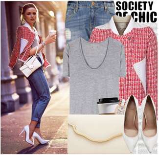 Интересным решением является сочетание джинсов с завышенной талией и джинсовой рубашкой, желательно в разных оттенках. Туфли или босоножки на каблуке и сумочка в тон обуви добавят изюминку вашему стилю.
