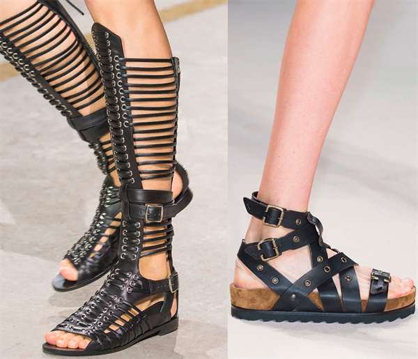 Летние босоножки — самая необходимая обувь в жаркое время года. В сезоне 2022 дизайнеры используют многочисленные переплетения: как кожаные, так и ленточные (из атласа). Для девушек, предпочитающие стиль гладиаторов, стилисты брендов Philipp Plein или Fay представили новые коллекции воинственной обуви.